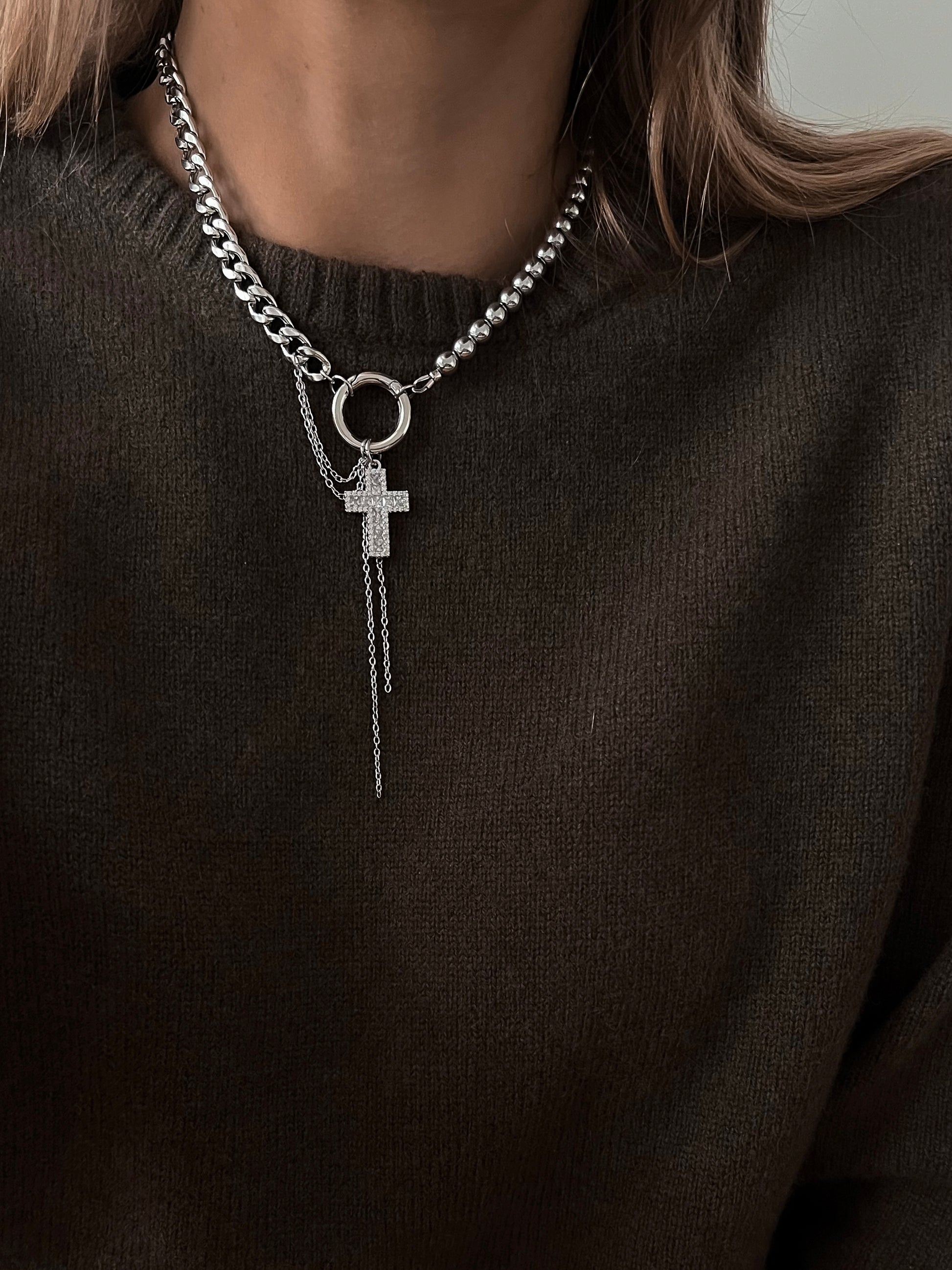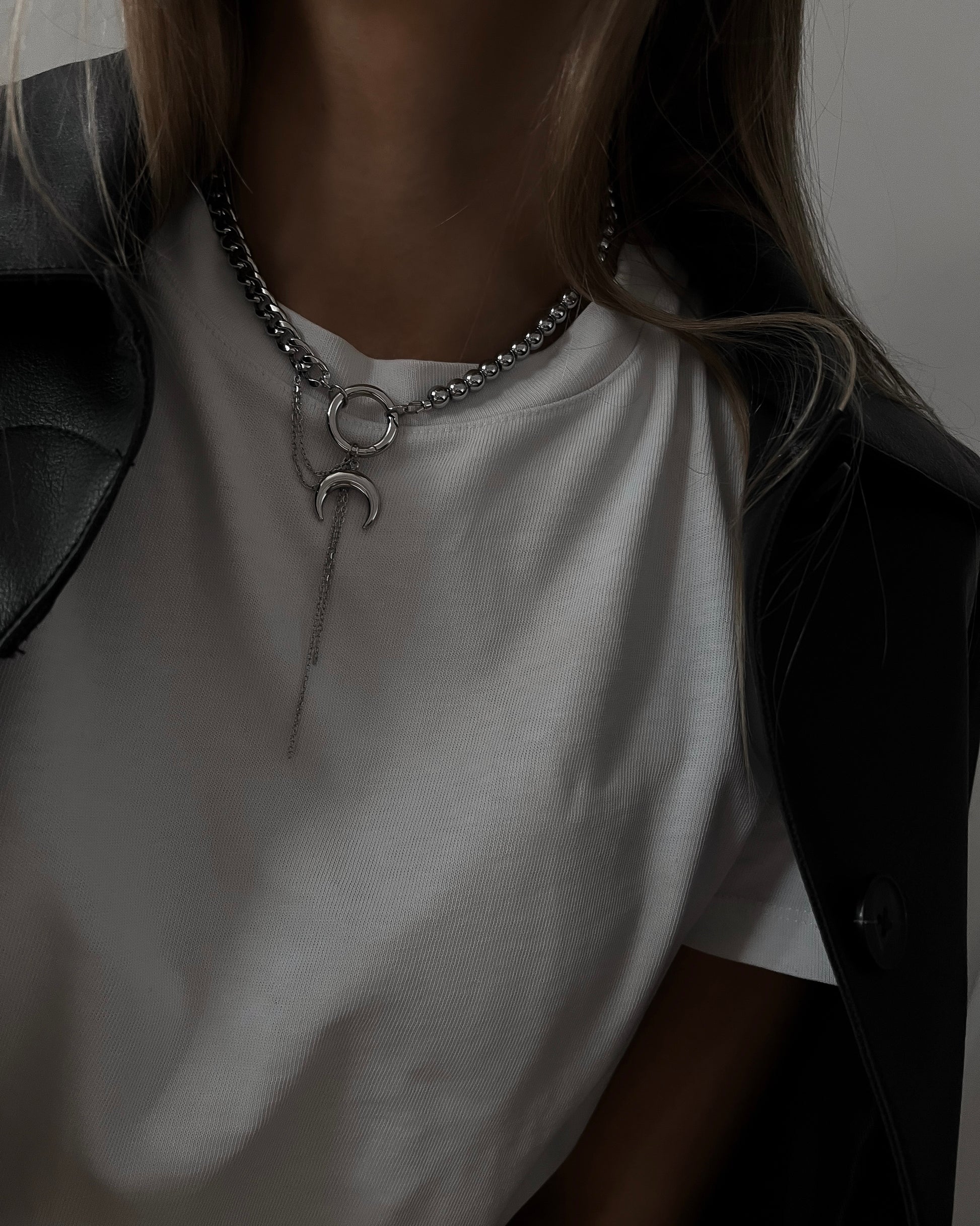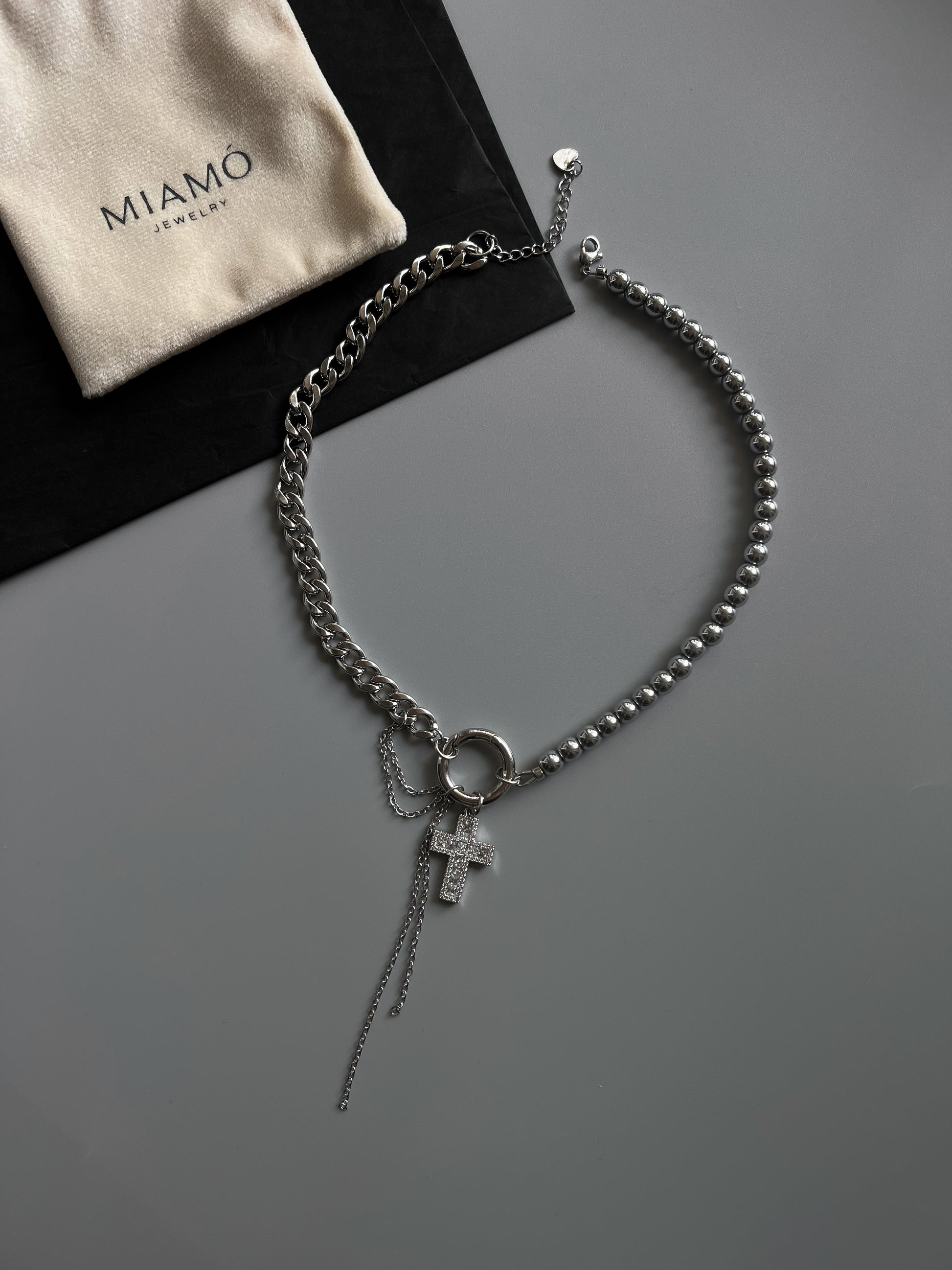 Kombikette aus Hematitperlen und Edelstahl mit Anhänger