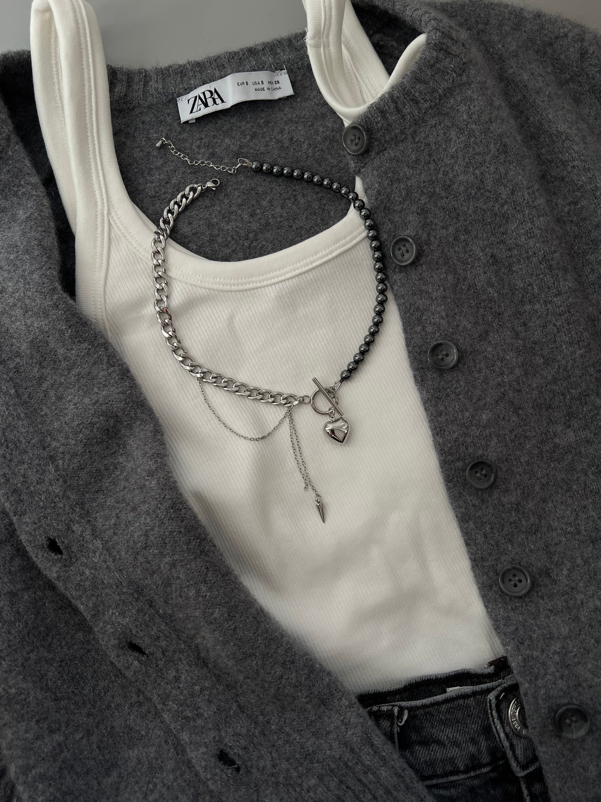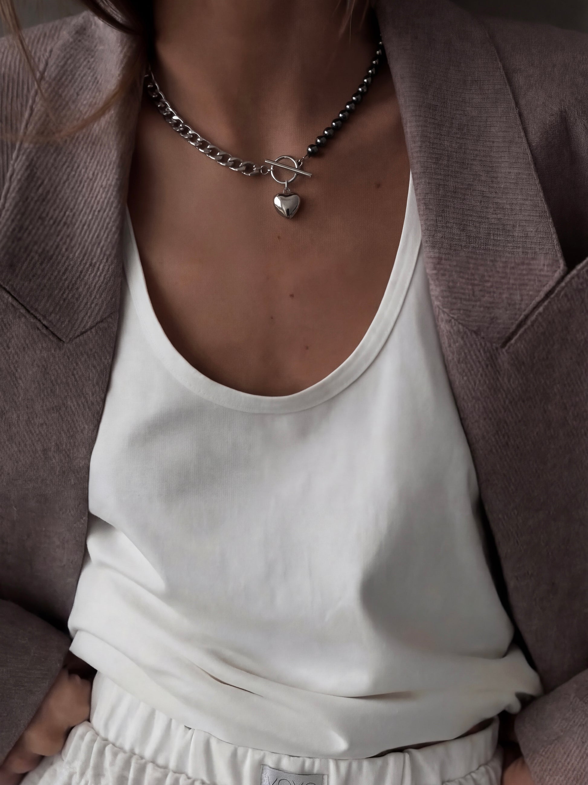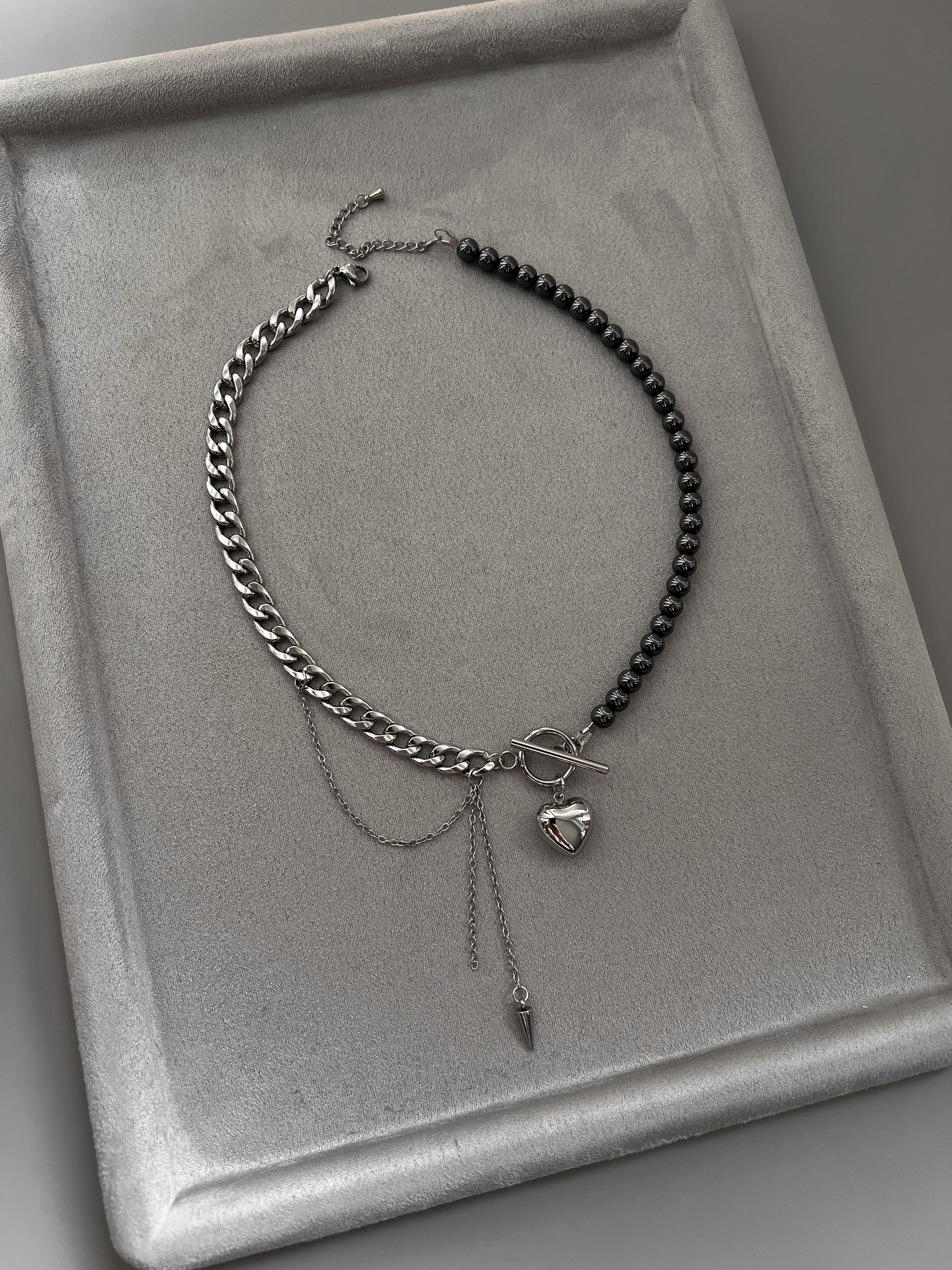 Kombikette aus Hematitperlen und Edelstahl mit Herz-Anhänger