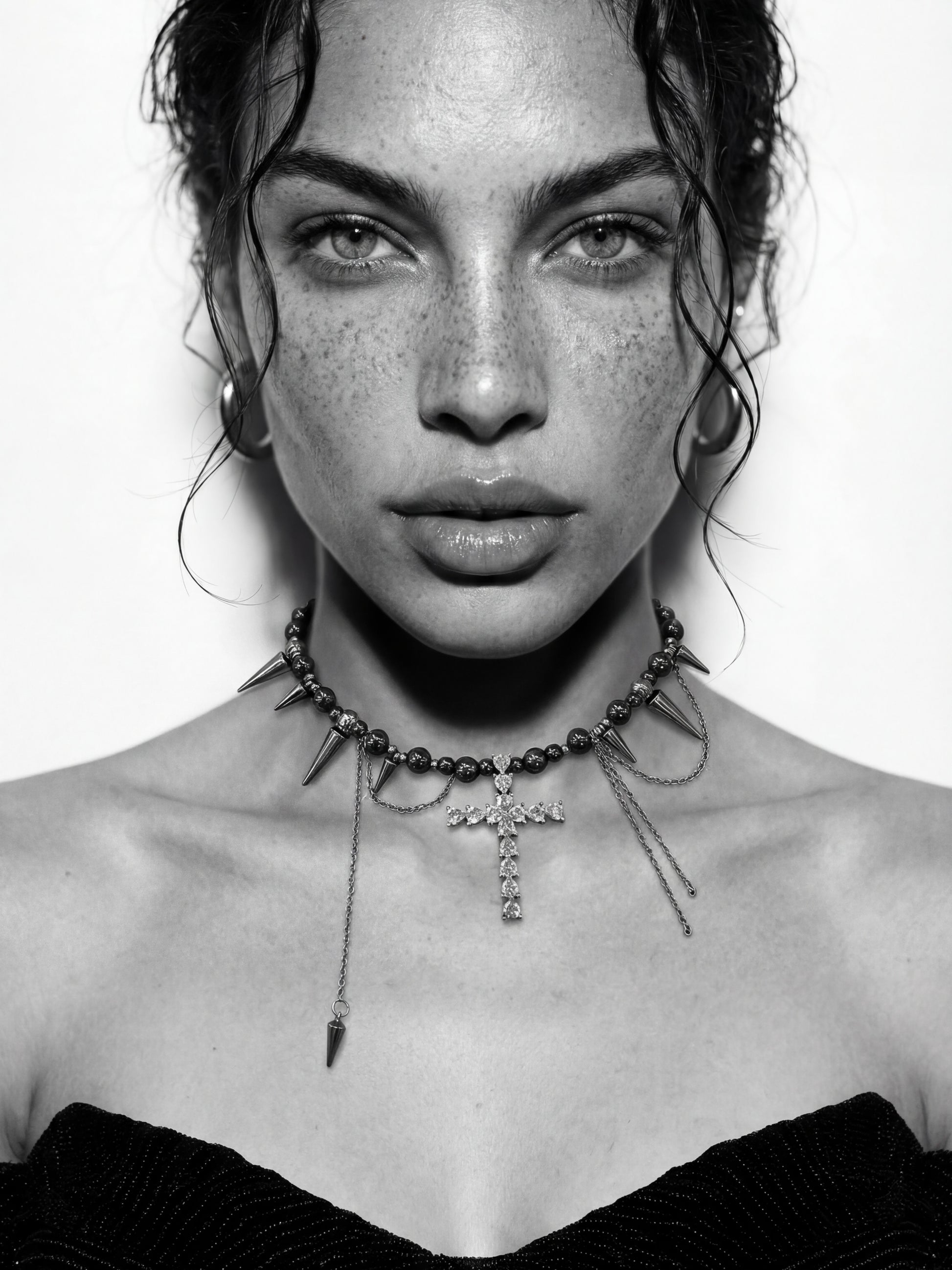 Kette aus Hematitperlen mit Edelstahl Spikes